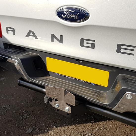 Double bumper protector with single socket holder in mirror finish stainless steel.